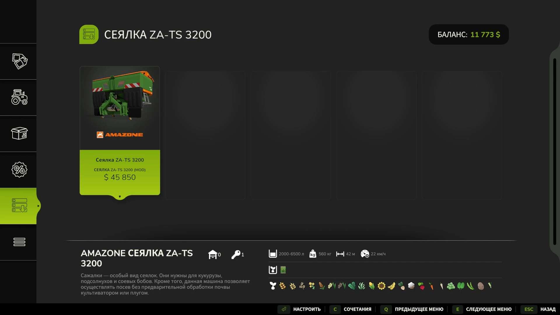 NOTE: For the type of “seeder”, speed restriction is used only if it is in the lowered position as conceived by the game.