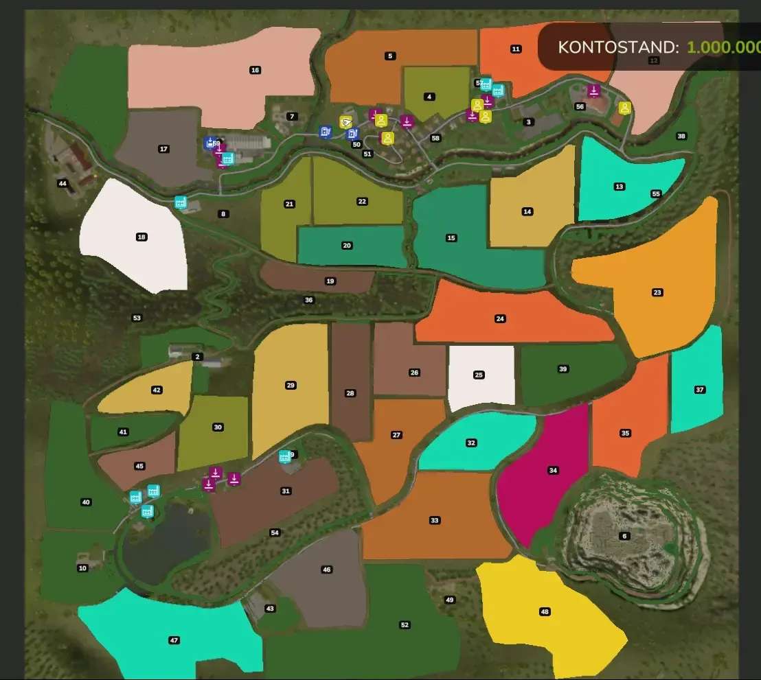 There is a building site where you can build more productions. There is a BGA, a forestry company, a contracting company, a nursery, a gravel pit, and much more.