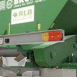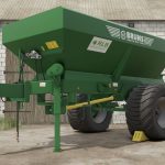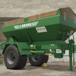 Single axle trailer for granulated and dusty fertilizer or limes, equipped with a 800mm wide conveyor belt and steep walls to avoid bridging effects.