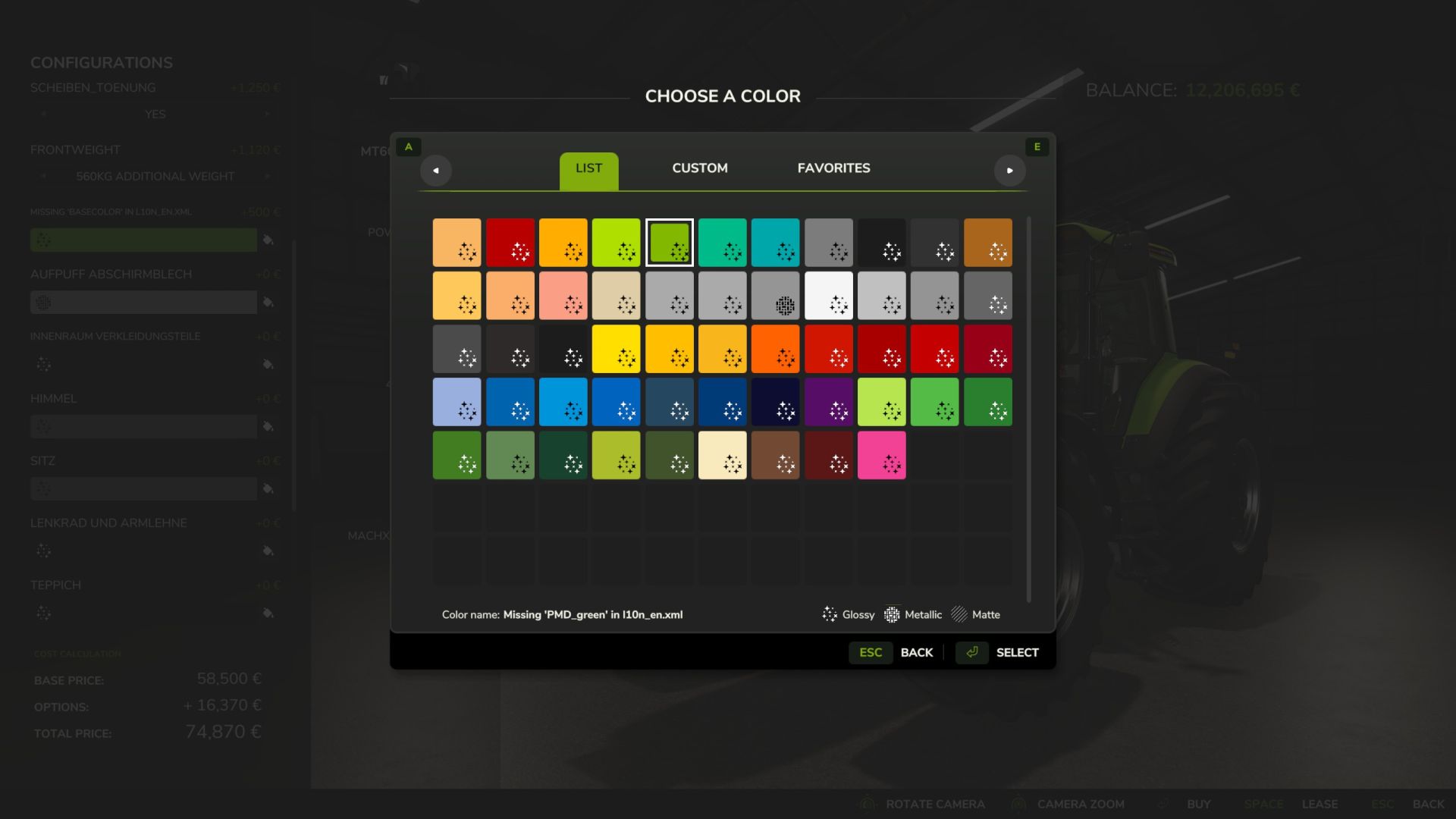 – Color selection for vehicle body