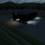 The base version is a simple garage for storing tractors and equipment. The second version includes a workshop and fueling options. The third version also features a silo for bulk and liquid materials.