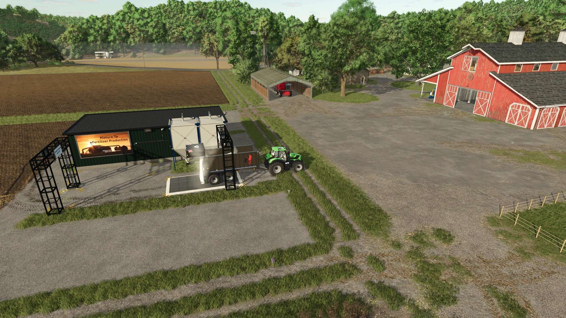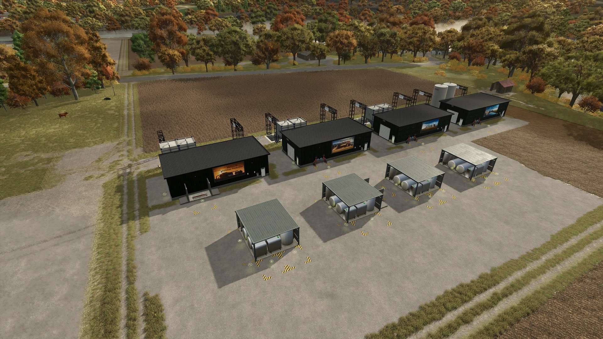 This pack contains 8 buildings, 4 new products, and 2 trailers. 4 small farm productions: Here, fertilizer can be produced from manure, slurry, digestate, or chemicals. Liquid fertilizer can also be produced from fertilizer and water. 4 large productions: Here, not only can fertilizer be produced from raw materials, but fertilizer can also be stored and purchased here. A pallet sale is also included. 4 products: Ammonia, phosphoric acid, urea, and potassium chloride can be used to produce fertilizer. These products can be purchased in the shop. (BigBag and IBC) 2 trailers: A small 1000-liter trailer and a 50,000-liter truck trailer. These trailers can be used to transport all liquids in the game.
