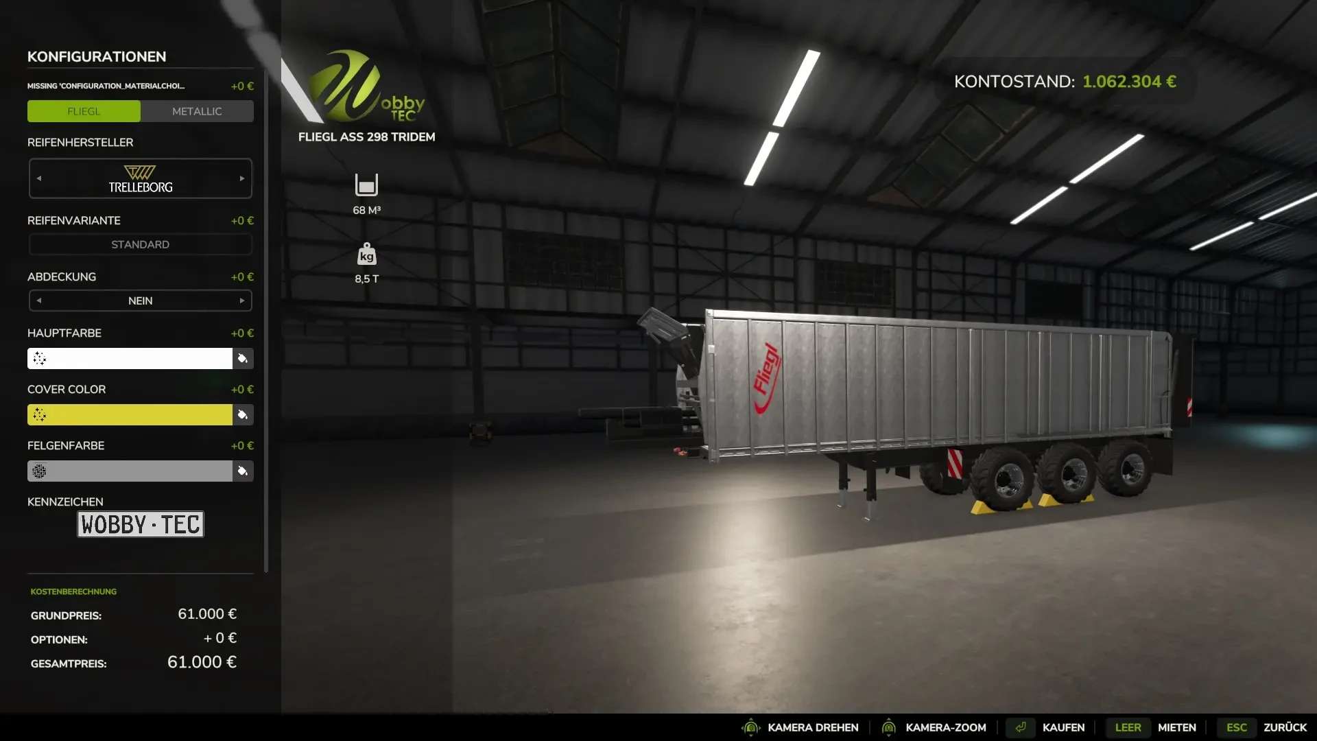 FLIEGL ASS298 3-axle push-off shield trailer WobbyTec v1.0.0.1 LS25