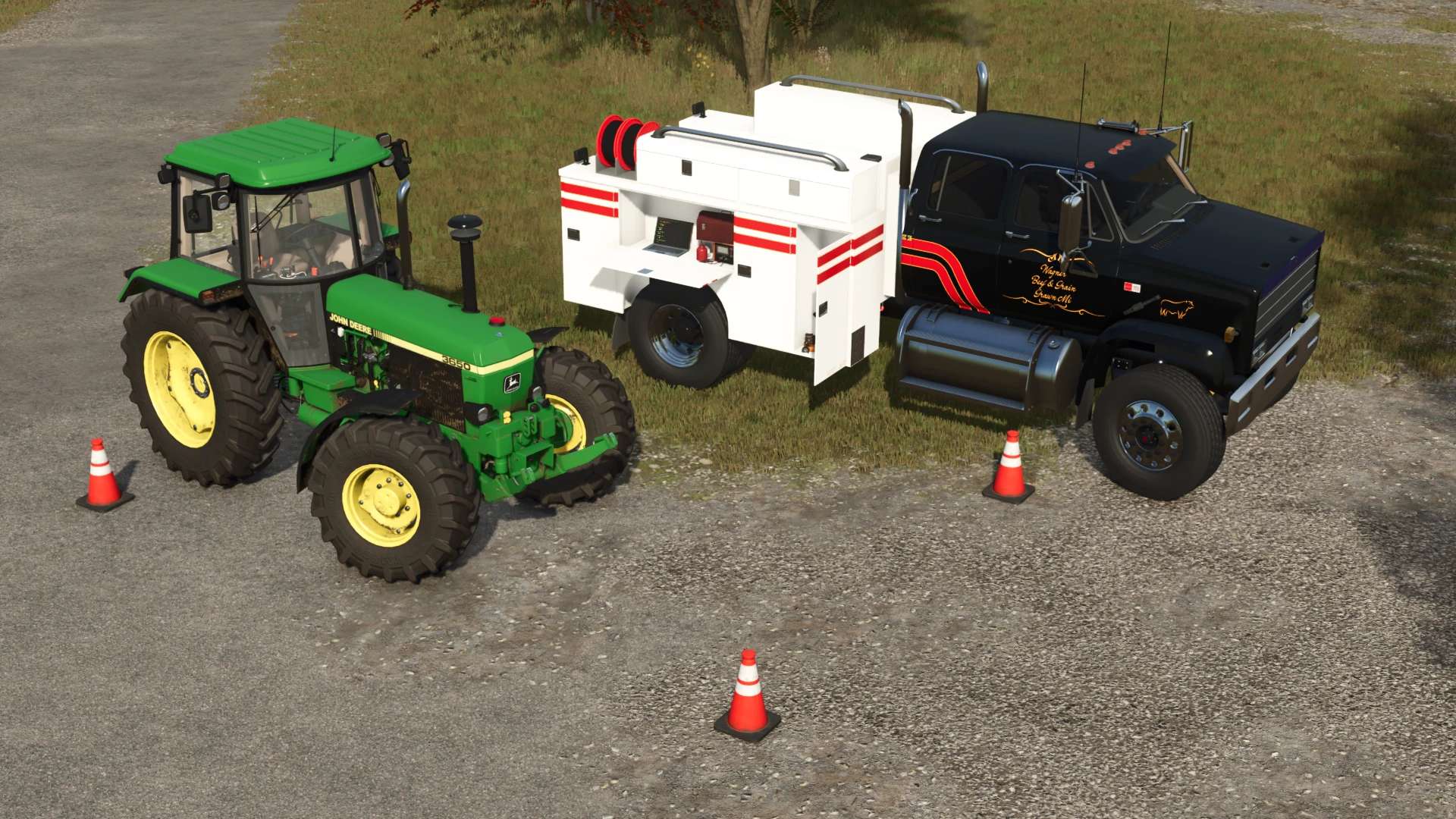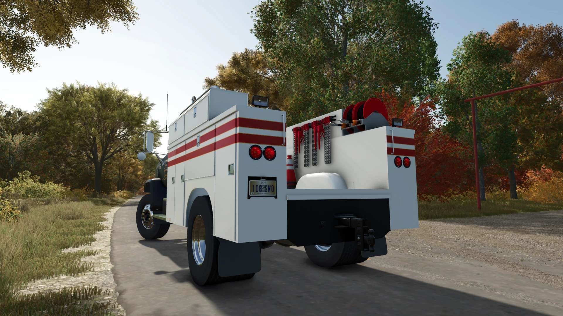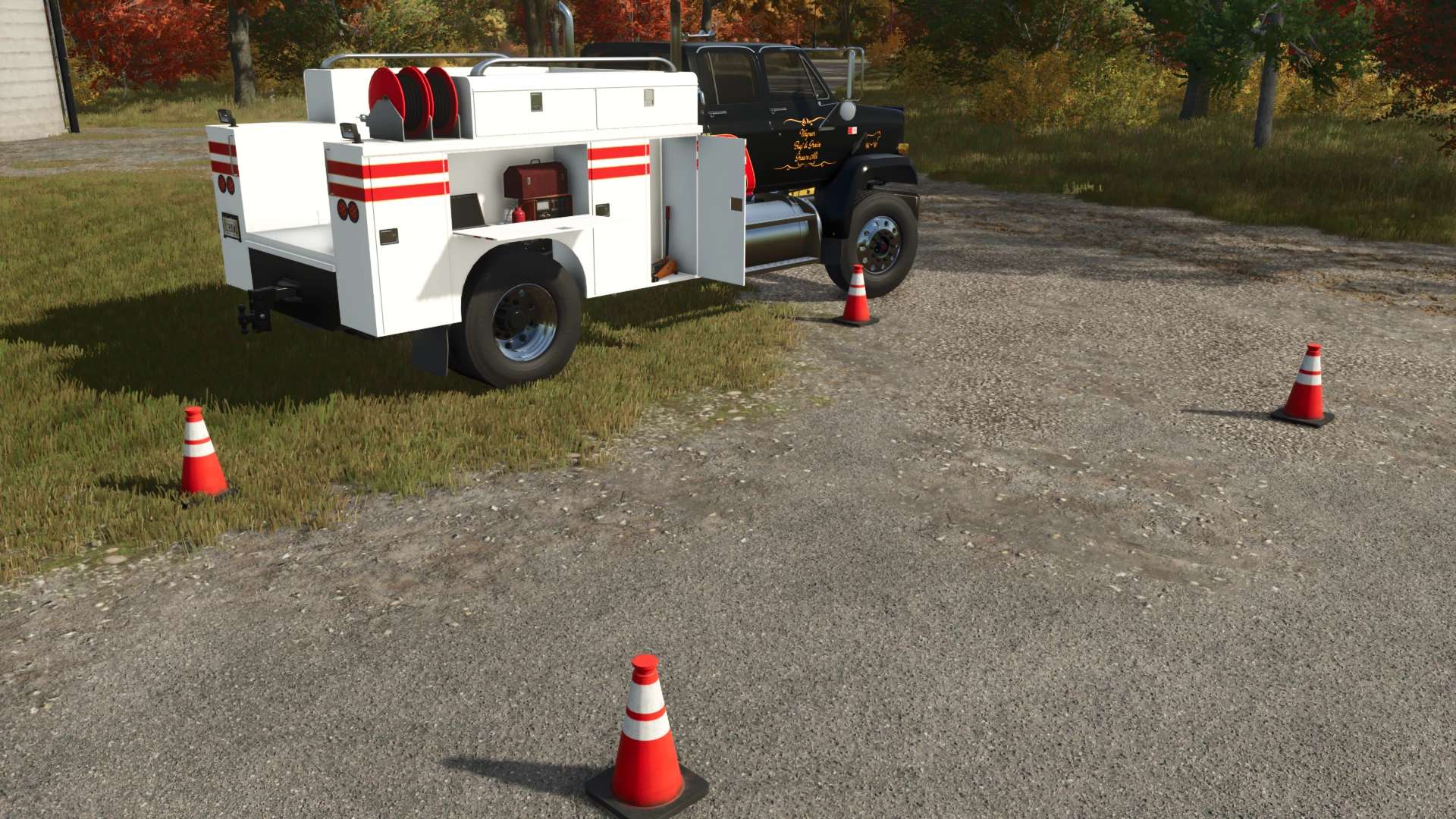 Service and fuel truck. The volume of transported fuel is 1500L. The activation point of service functions is located near the rear right wheel. All sections of the service platform are opened (IC).