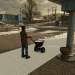 This is a spreader. You can use it to spread fertilizer, lime and salt. At a price of 200$, it is very cheap compared to the larger machines. It is very suitable for cost-effectively de-icing or applying lime to your small yard area. You can find it under fertilizer spreaders.