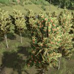 In the secondary foliage group, I now have 14 orchard or vine-type crops, including: Grapes & white grapes, Hops, Olives, 6 Fruit trees, 4 Berry bushes, the list is the same as on Zielonka, but with 4 new orchards: kaki (persimmon), goji berry, orange and lemon.