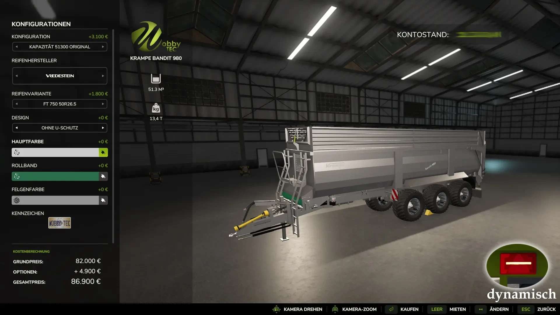 choice of color for exterior color, rim color, roller conveyor and chassis in the semi trailer (including original Krampe colors!)