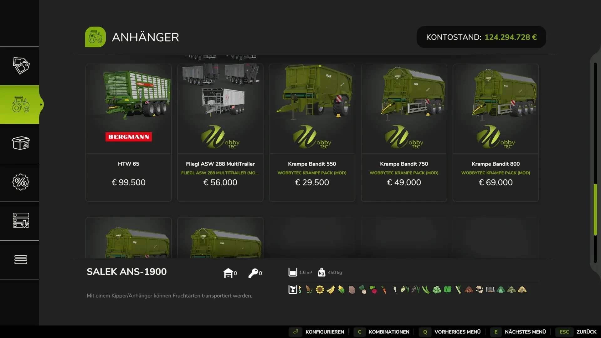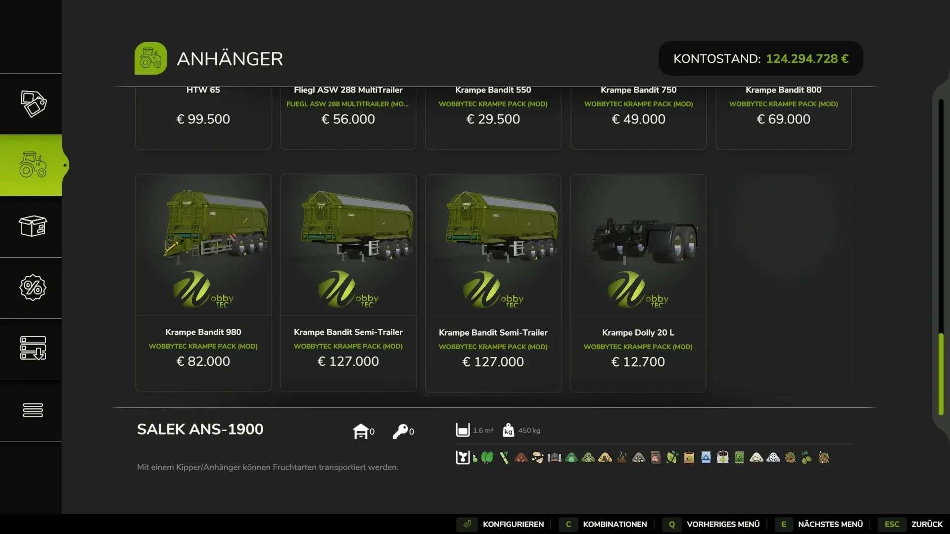 KRAMPE 550, 750, 800, 980 and trailer & Dolly 20L All-In Pack with animated rolling floor and automatic lifting axle in the trailer, LED dynamic taillights, latest KRAMPE standard