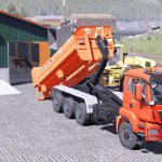 A custom made hook lift mixing wagon constructed using the Kuhn Knight RA 142 as a base model.
