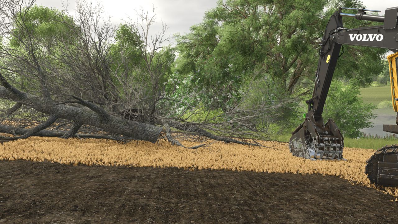The Land Clearing Pack represents the way a lot of farmers in North America clean up and clear land to improve their fields and make them easier to farm. Consisting of a grapple bucket and a jerry can/fire this pack can help you quickly and easily take care of those trees in your way. It is designed for the Volvo Excavators from the Platinum Expansion but will also work on most other excavator mods as well.