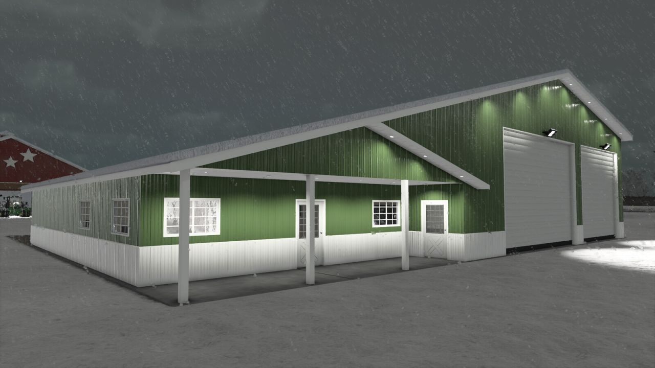 In work area You can storage crops, machines, pallets and Big Bags on shelves with AutoLoad and repair/repaint/customize or sell vehicles.