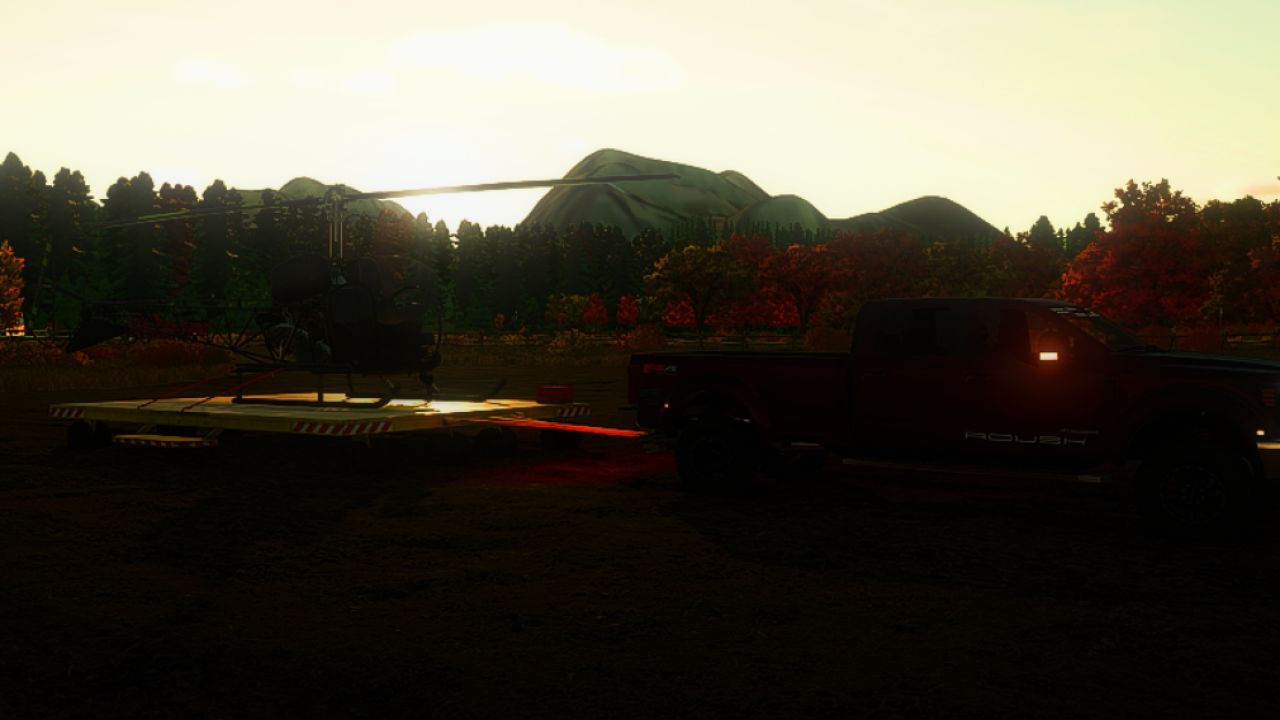 The flat helipad-style deck provides plenty of space for helicopters to sit securely while being transported. Its low profile and heavy-duty frame make loading simple and keep the trailer stable while driving across the map.