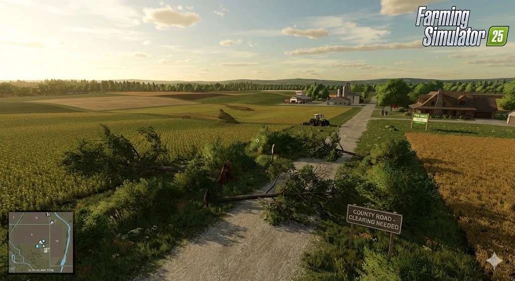 My first map: Location is in Nashville Michigan. Terrain generated with MAPS4FS, a great tool! – Thank you to iwatkot and others that have done modding for our community and provide needed help along the way via discord. The intent of the fields is for the farmers to dial them in as they wish, but is close to the real field shape and size but adjusted little for easy game play. Field 1, 16, 26, 33, and 35 come with a sellable house with sleep trigger. Productions are Bakery, Dairy, Grain Mill, Oil Mill, YoGurt. The FS25_GrainMillPlus.zip mod is available from the in game mod hub. There is a county road that needs trees cleared by the farmer to be usable again. The County has a 33 feet right of way in ditches, the board has granted farmers the right to smooth any area needed for installing driveways.