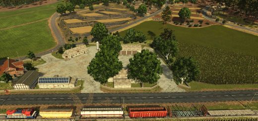 The map contains a farmers market and a sawmill. All other productions and sellpoints must be built by the player.