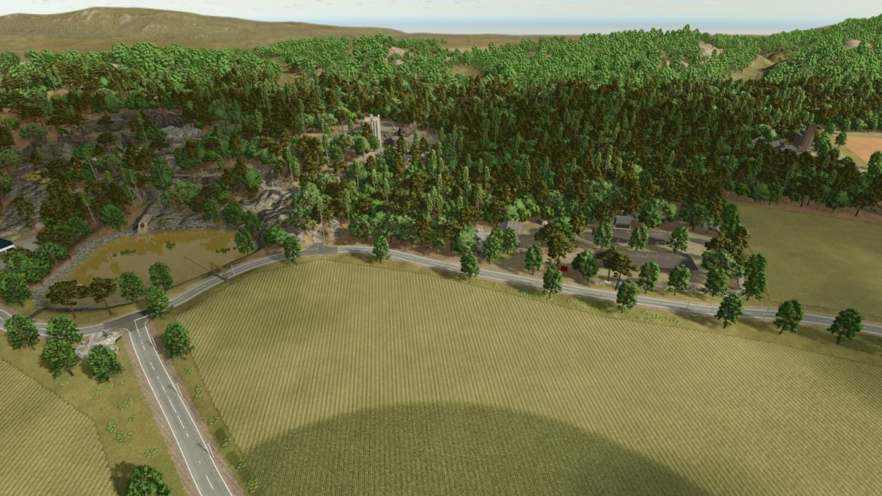 The map brings its own space marked for the factories, 3 points of sale, 26 field of various sizes, also has a farm space with farmhouse silos and sheds.