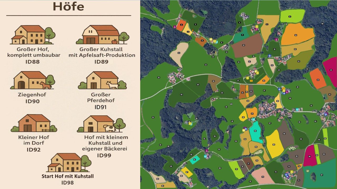 A cozy, small-scale farm located directly within the village. Great for early-game play, role-play scenarios, or as a charming side farm with an authentic rural atmosphere.