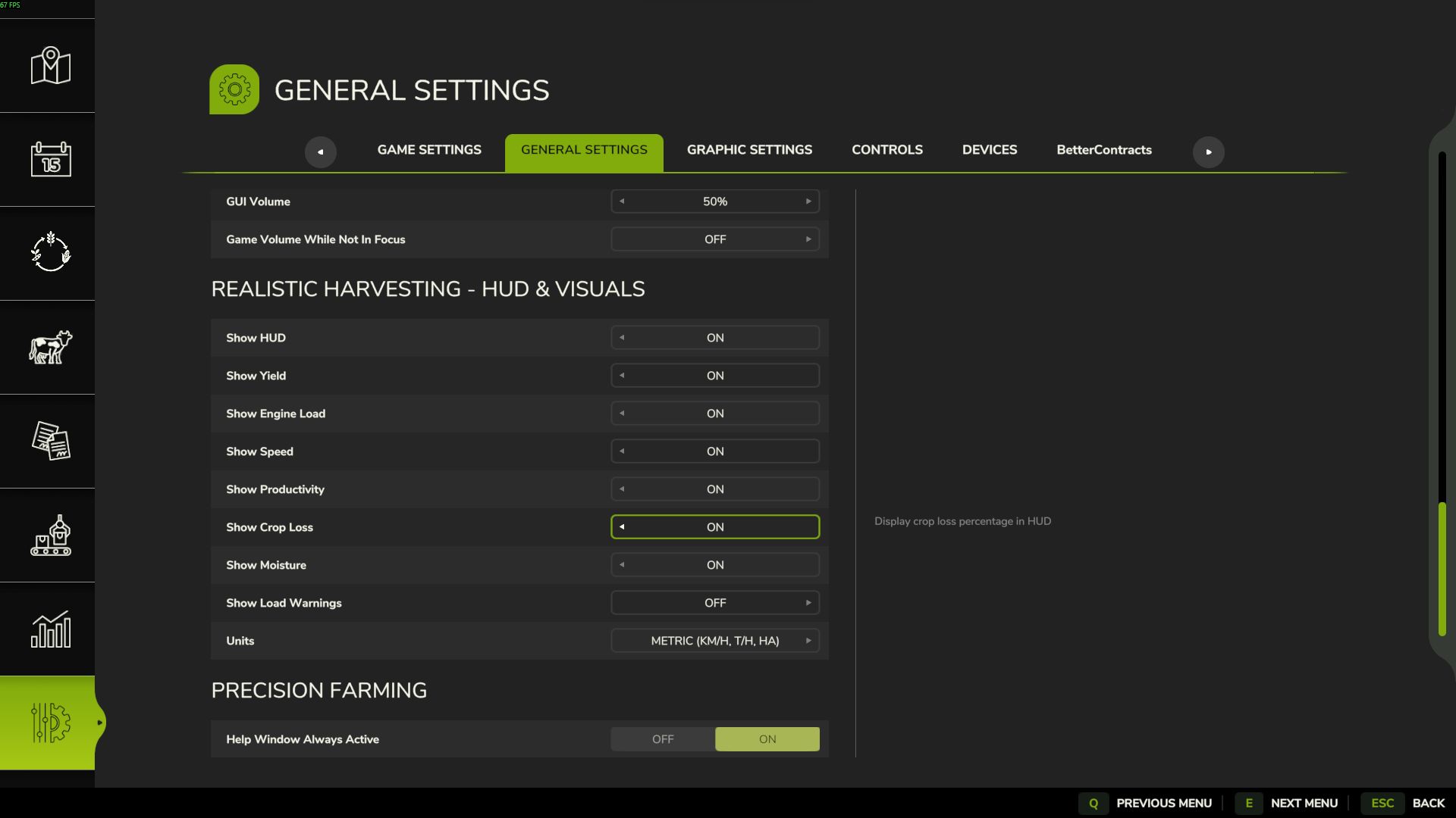 – Realistic: For simulation fans. Speed and crop loss are strictly tied to the combine’s physical capacity and your manual calibration settings.