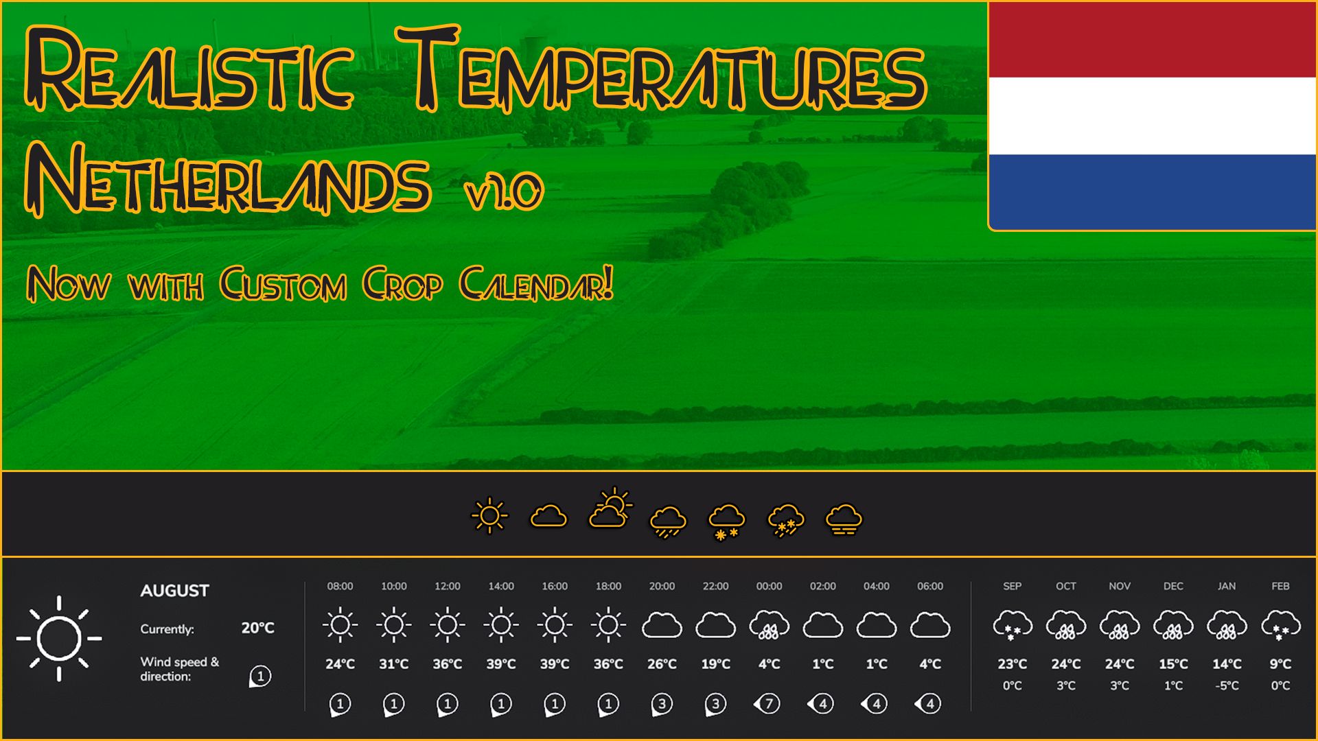 I bring you Realistic Temperatures – The Netherlands, the update for the fifth of a series of scripts for FS25 that will allow for more realistic and varied temperatures depending on the region you are playing.