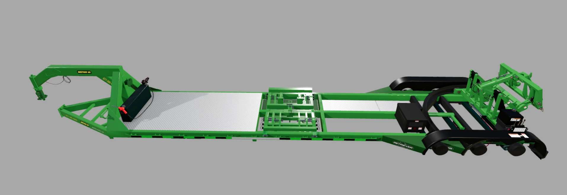 There’s no need for “lowboy” trailers and a tractor or forklift to load 3-point equipment off the farm with the Retriever™…