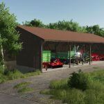 This building consists of a bunker silo and a slightly higher shelter for vehicles and machinery. The mod also includes a variant of the building where the actual bunker silo can be used as a wood chip storage.