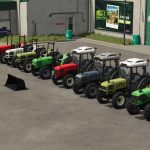 The SDF vineyard pack contains four ranges of vineyard tractor from the four main tractor brands owned by the SAME Deutz-Fahr group and a front loader made by the portuguese brand Agriduarte with it’s respective implements. The ranges included are the Same Golden, the Lamborghini AGILE, the Huerlimann XN and the Deutz-Fahr AgroCompact. The Agriduarte M2 front loader can be attached to any model mentioned above and has four different implements, including two bucket shovels, one set of pallet forks and one set of bale forks.