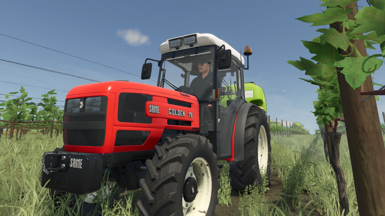 The SDF vineyard pack contains four ranges of vineyard tractor from the four main tractor brands owned by the SAME Deutz-Fahr group and a front loader made by the portuguese brand Agriduarte with it’s respective implements. The ranges included are the Same Golden, the Lamborghini AGILE, the Huerlimann XN and the Deutz-Fahr AgroCompact. The Agriduarte M2 front loader can be attached to any model mentioned above and has four different implements, including two bucket shovels, one set of pallet forks and one set of bale forks.