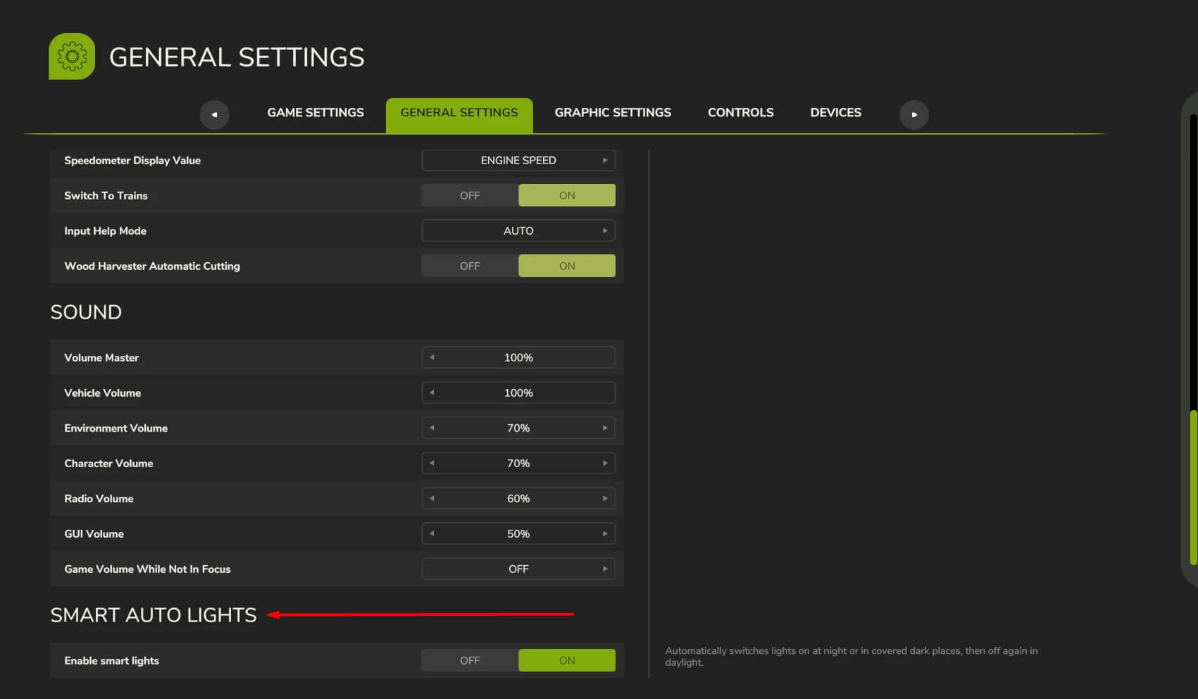 – All aspects of the mod are fully customizable. To configure them, go to Menu – General Settings – Smart Auto Light category.