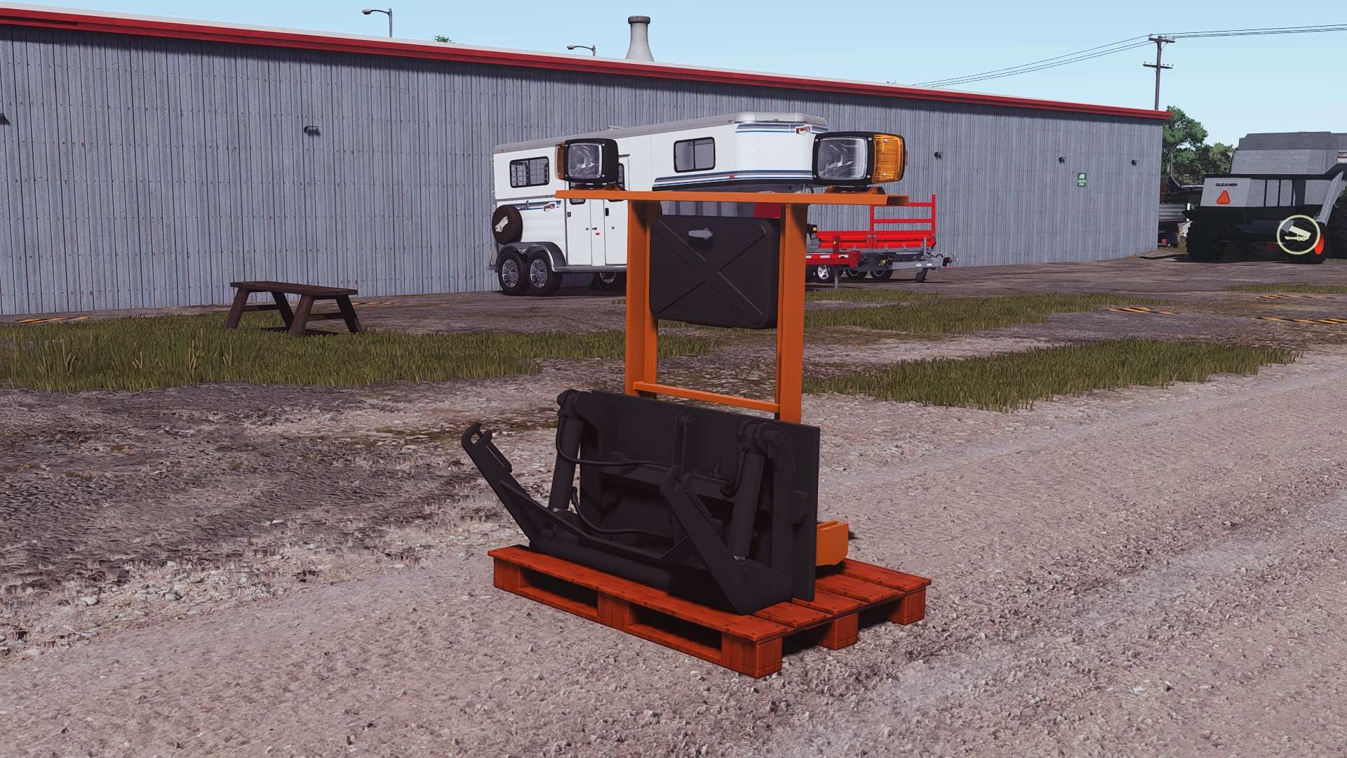 NOTE: just drive close to it and it will automatically attach. Was made for attaching the in-game snow plows, but you can use it for other stuff too. Should work on other mods using the “skidsteer” attacher type.
