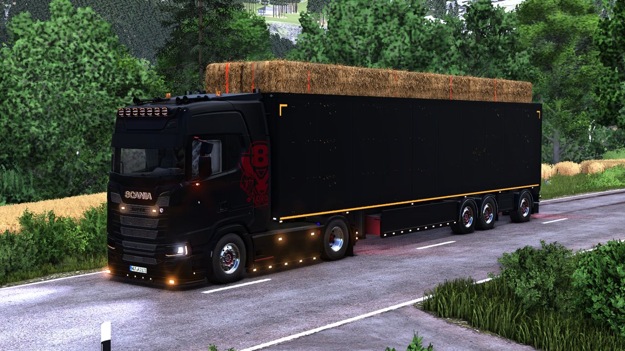 For hardcore players, you can manually load bales trough the rear doors, by letting the walkingfloor running on forward position, and unload them by opening doors and let put the floor on backward