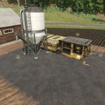 Cement Factory: processes stone into cement products. Stacks products in stacks of 3 for easer loading.