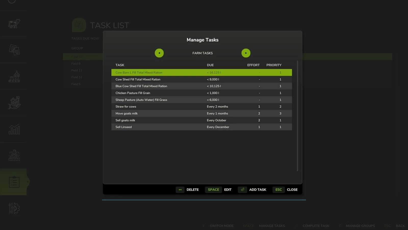 – Change evaluation to account for empty production/husbandry levels triggering a task