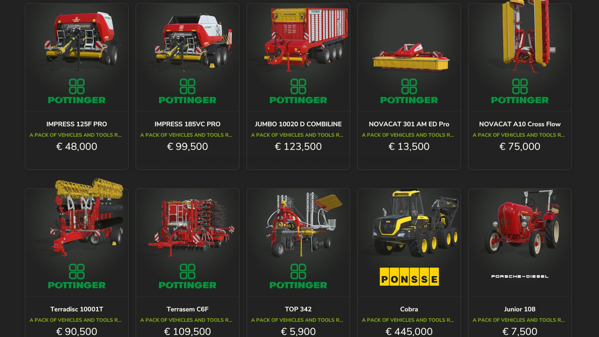 Poettinger – impress125FPro, impress185VCPro, jumbo10020Tridem, novacat301